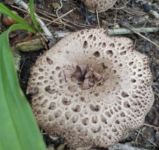 - 갓 표면에 거친 비늘이 선명해요
