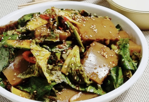 묵을 냉장고에서 꺼내 딱딱하다면? 끓는 물에 10-20초만 살짝 데쳐주세요. 비린내도 없어지고 텍스처가 훨씬 부드러워져요. 이거 모르는 분들 진짜 많아요.