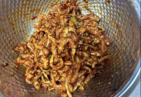 - 조청으로 물기 빼기: 물기를 짠 무말랭이에 조청 2~3큰술을 넣고 10분 기다린 후, 나온 물을 버리고 다시 짜세요.