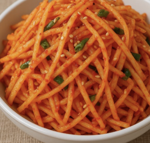 많은 분들이 무생채를 만들 때 이런 고민을 하세요. "왜 내가 만든 건 물이 자꾸 생기지?" "식당처럼 빨갛고 예쁜 색이 안 나와" "아삭한 맛이 금방 없어져버려"...