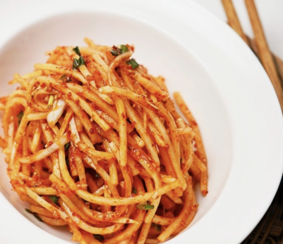 - 비빔국수: 소면 삶아서 무생채 올리고 비벼먹으면 한 끼 뚝딱