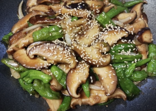 - 버섯 넣고 강불에서 3~4분간 쉬지 않고 볶기 (이때 절대 건드리지 말고 1분 정도 그대로 두기)